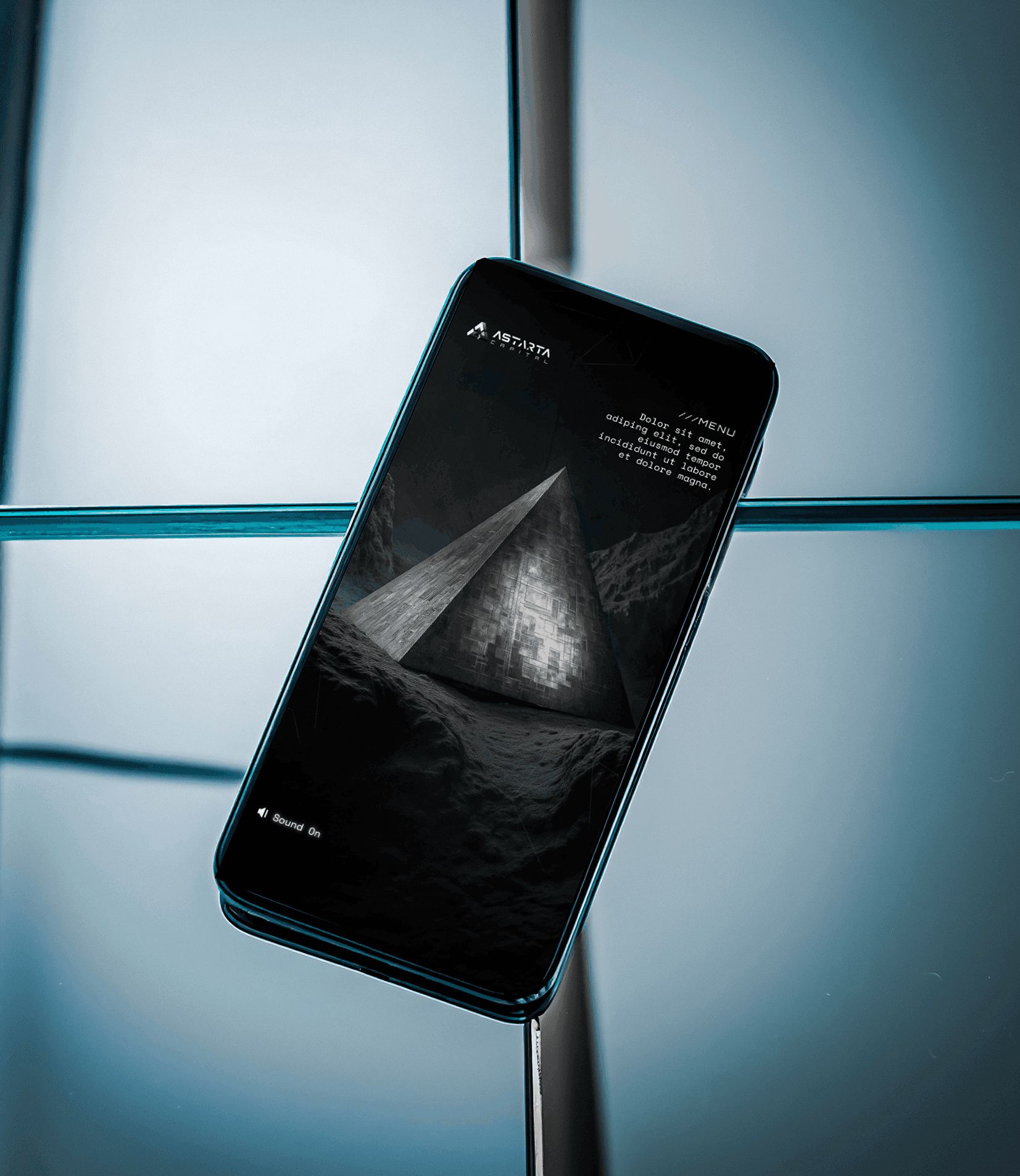 Every interaction feels deliberate: from the layered navigation and dynamic menu transitions to the ambient “Sound On” detail that enhances the cinematic tone.