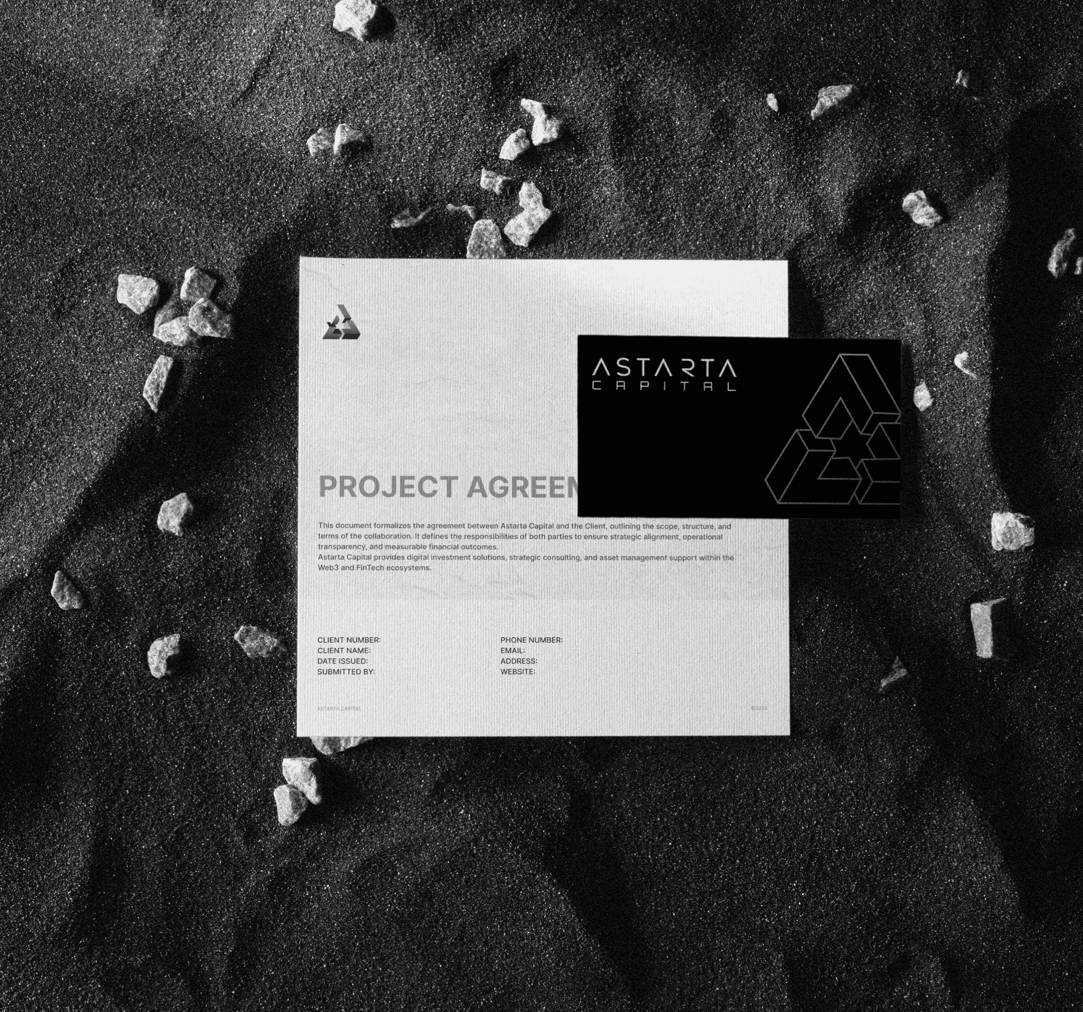 The result is a bold, tech-driven 3D aesthetic that communicates trust and forward-thinking — positioning Astarta Capital as a modern player in the decentralized economy.