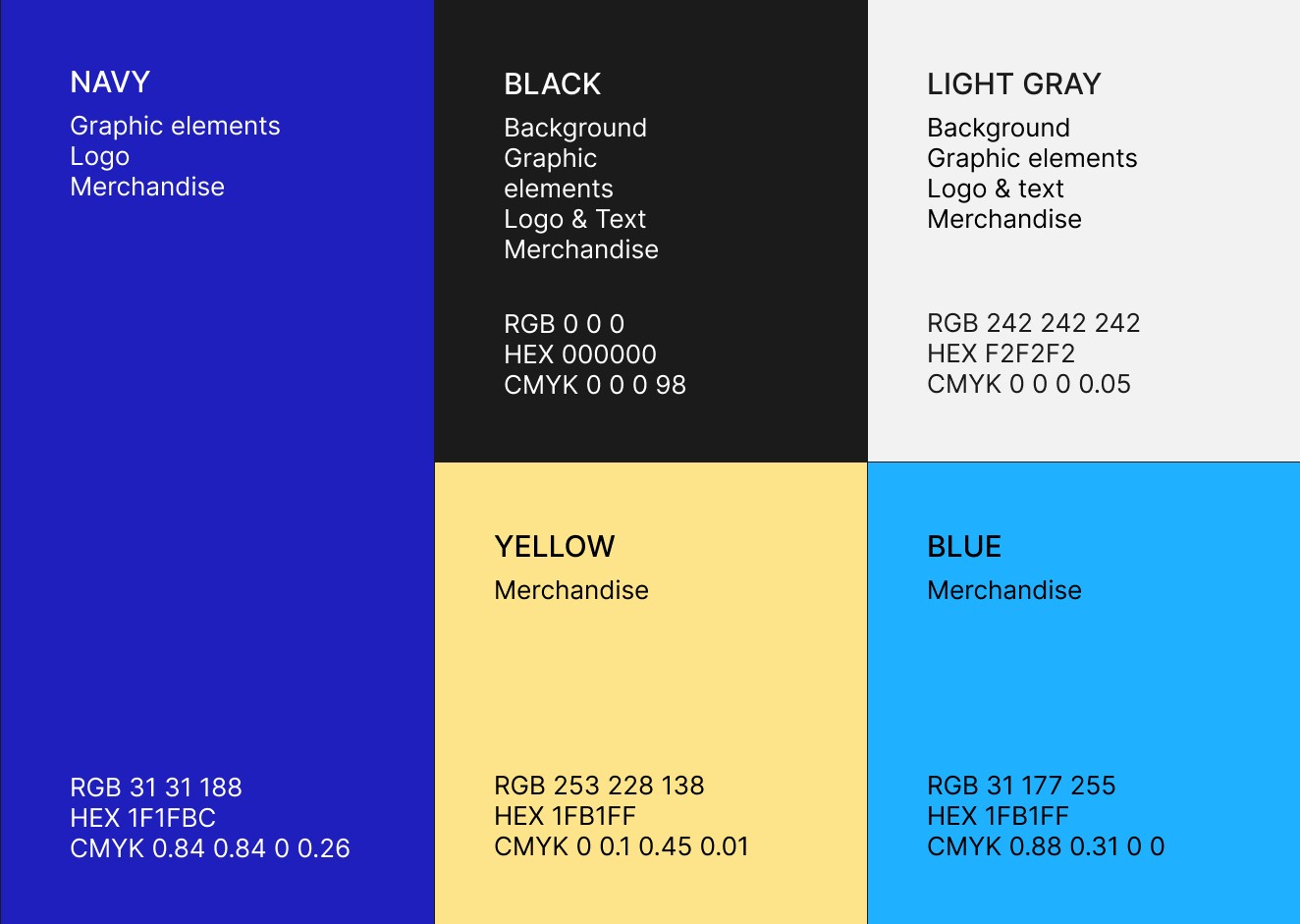 We designed a brandbook covering every touchpoint — from logo usage and type hierarchy to social media, merchandise, and print.